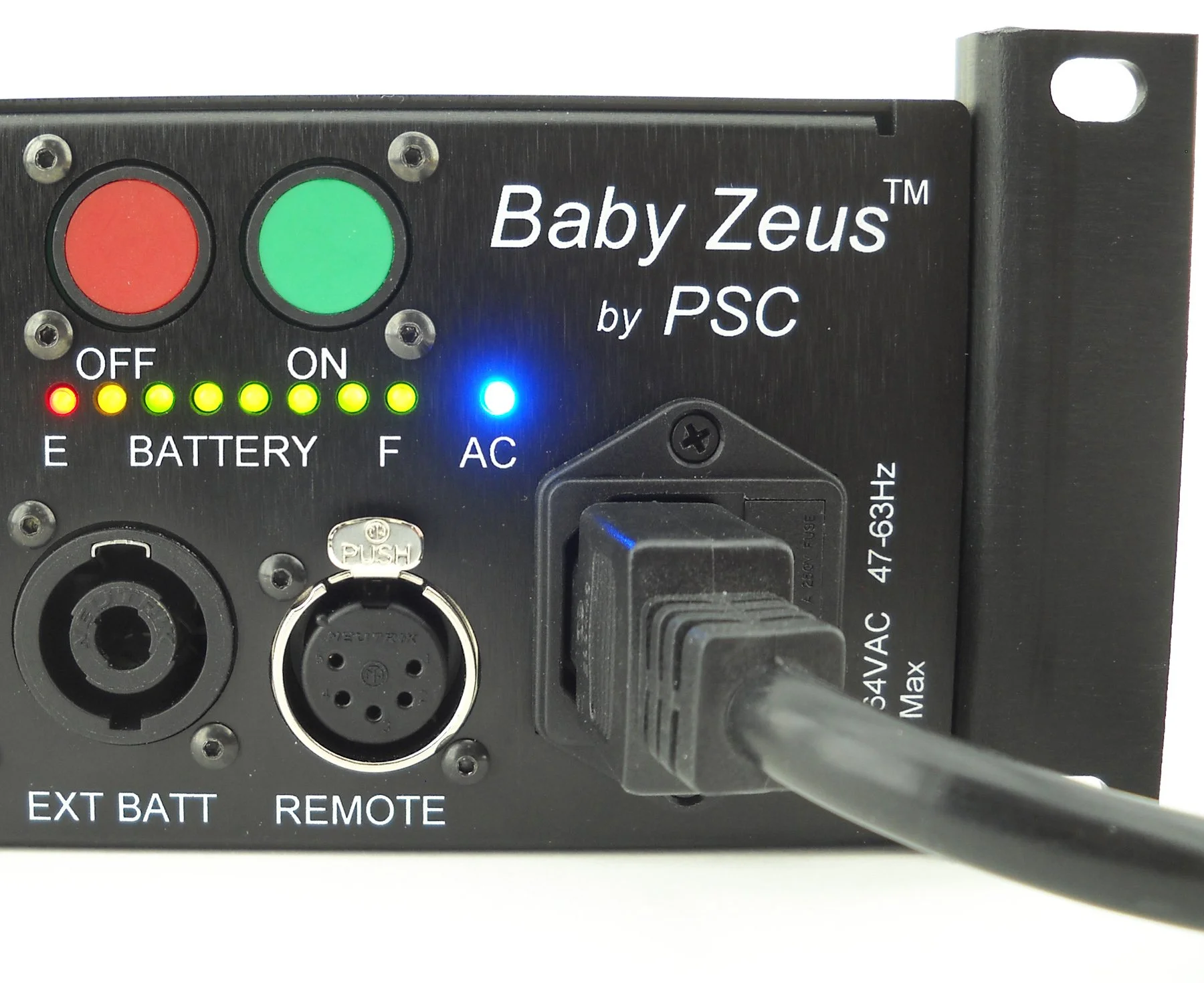 The PSC baby Zeus is equipped with multiple point rack rail mounting brackets. These brackets can be mounted from either the front or the rear of the baby Zeus and can be “Offset” mounted for ease of cable and connector management.