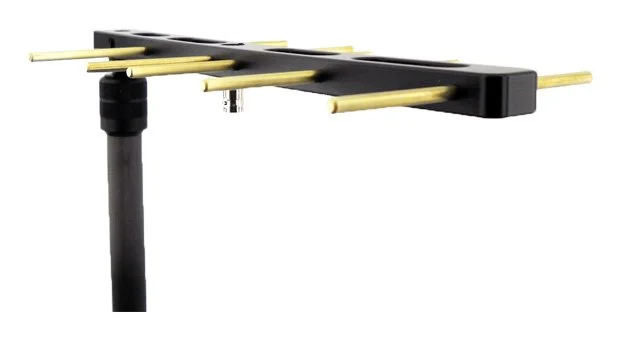 The PSC 941 Yagi Antenna is designed to be used with Lectrosonics™ receivers operating in the 941 Block frequencies. This new antenna design is the result of hundreds of hours of design engineering and testing. The overall design is relatively small and compact and is constructed using professional grade materials. The beam of the antenna is CNC machined from Delrin and the elements are machined from solid brass for years of trouble-free operation in the field. This Yagi antenna operates from 940Mhz to 960Mhz and thus covers the entire 941 Block of frequencies. This antenna will provide approximately 9dB of gain over that of a typical dipole antenna. It contains two 3/8-16 threaded mounting points allowing vertical or horizontal polarization mounting options. A 50 ohm BNC output connection is standard.